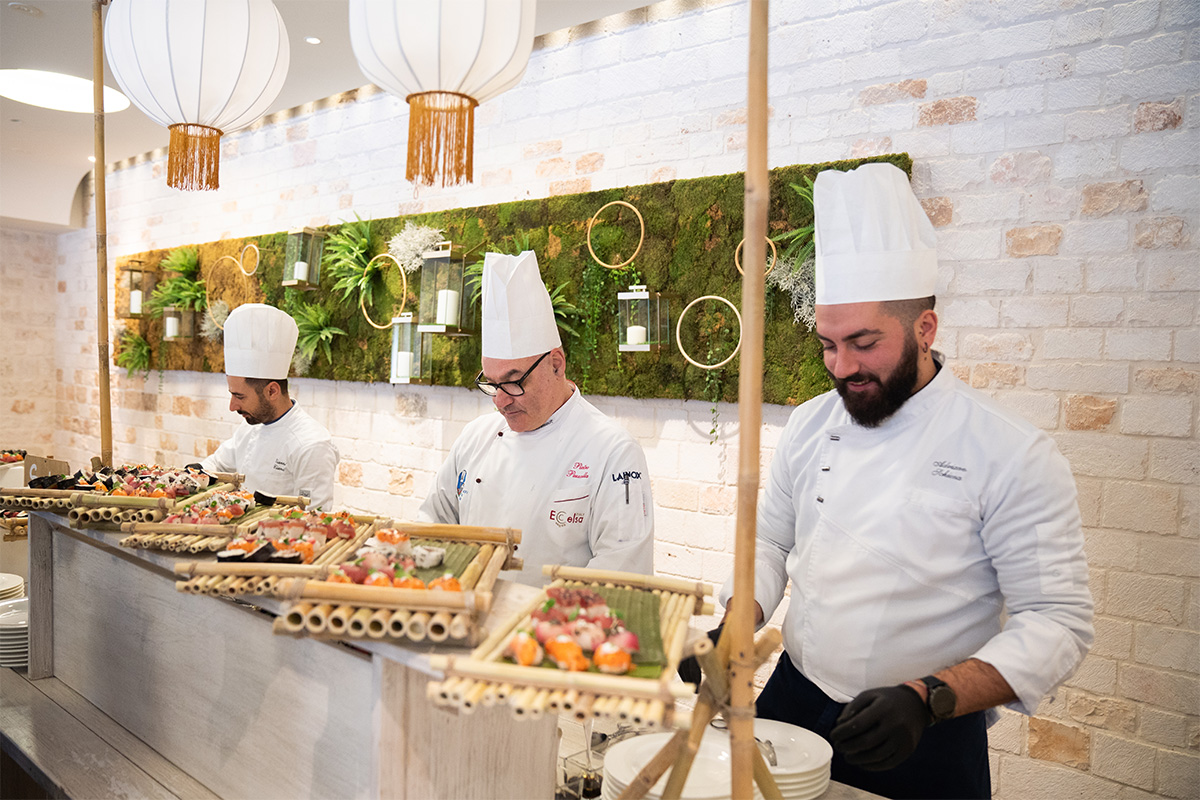 L'Executive Chef Pietro Pezzolla e la sua brigata vi regaleranno esperienze gourmet in ogni momento della giornata. Aperitivo di benvenuto, pranzo e cena serviti, wedding party e open bar, fino al buffet di dolci che conclude la serata. Ogni istante sarà emozione.