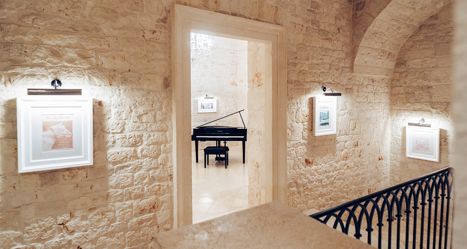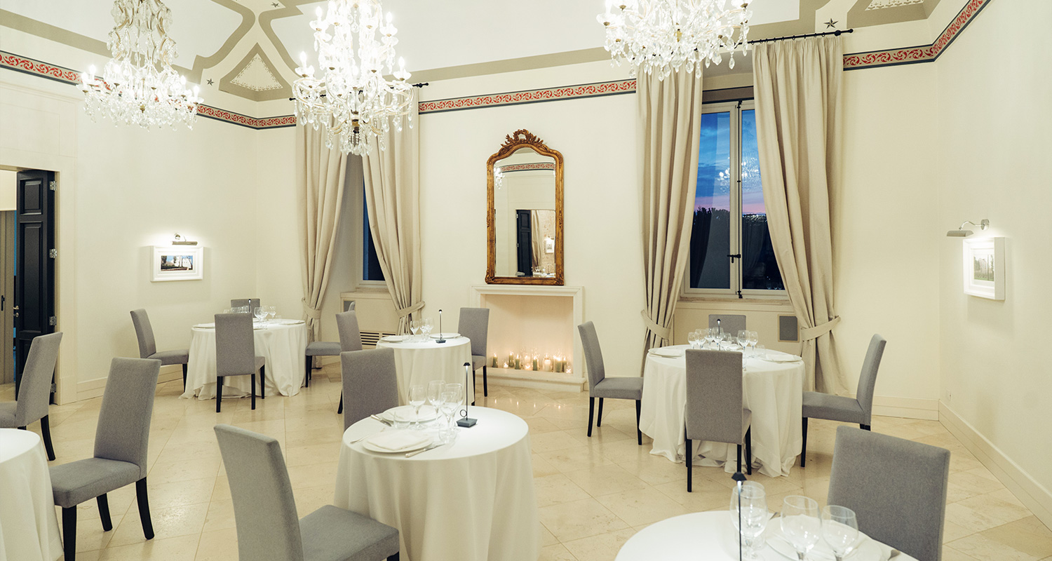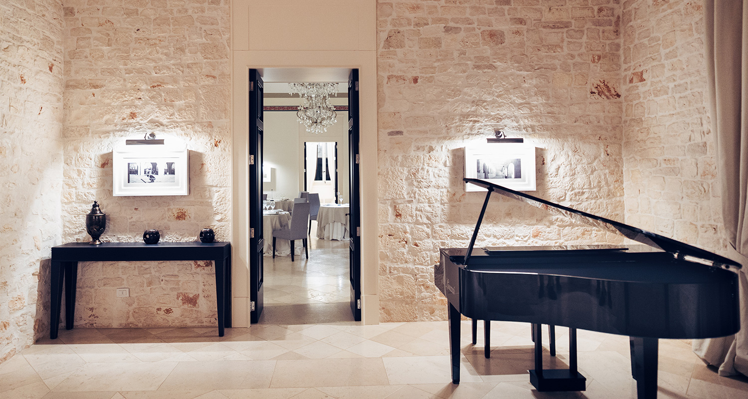 Il primo piano del Palazzo, affacciato sul giardino e la pineta, vi accoglierà in un'atmosfera calda e raffinata.